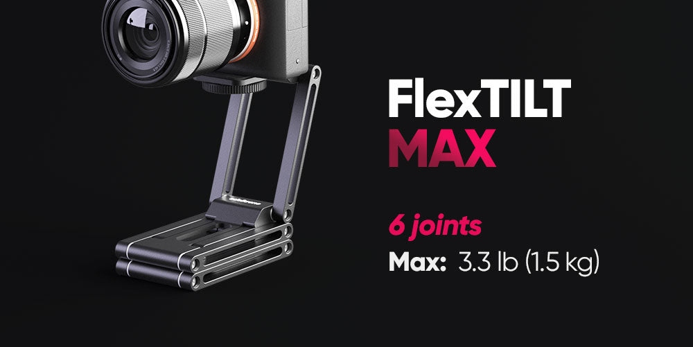 Die bahnbrechende Stellfläche des FlexTILT PRO gibt Ihnen die Freiheit, zu filmen, ohne von schwerer Ausrüstung belastet zu werden. Es ist klein genug, um in Ihre Tasche zu passen, und stark genug, um bis zu 6,8 kg Ausrüstung sicher zu tragen.