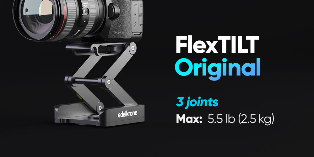 Der leistungsstarke FlexTILT PRO funktioniert einwandfrei mit jedem Kamera-Setup bis zu 6,8 kg. Kombinieren Sie FlexTILT PRO mit edelkrone-Produkten mit ähnlicher Tragfähigkeit, wie SliderPLUS PRO, SliderONE PRO oder Wing PRO, um Ihre Produktion zu verbessern.